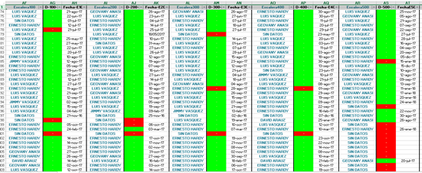 Volvemos a la tabla descartamos lo filtrado y aplicamos solo el segundo filtro para la col 14 obviamente "NO"