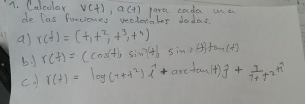 1. Calcular v(t), a(t) para cada una de las funciones vectoriales dadas, les adjunto una imagen