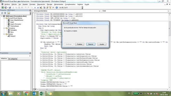 Al guardar datos en la Hoja "Base de datos" pero no se que me quiere decir el error