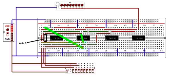 ¿Por qué razón no me deja conectar en esta parte? Hace que el circuito no cumpla la tabla de verdad. Ya la probé y en efecto es como si no estuviese conectada solo esa entrada