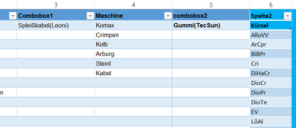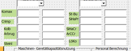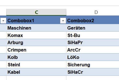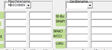 Cuando Cargo la palabra Maschinen en el Combox4 me debe cargar los Textbox con las palabras que están abajo, y cuando cargo la palabra Geräte en el combobox2 me debe cargar en los Textbox los elementos que están abajo, pero es que que en el userform no aparece nada cuando hago click en el combox4 ni tampoco en el combobox5