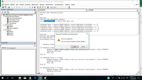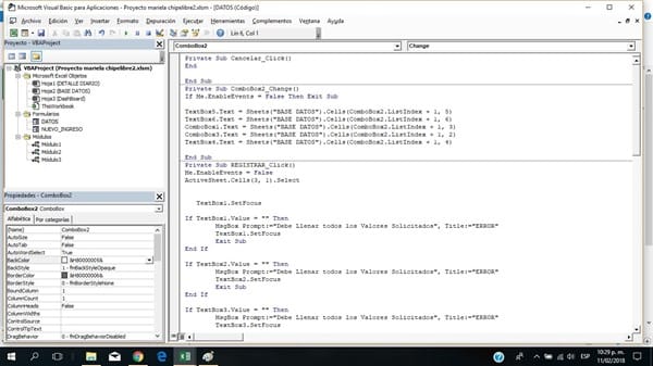 TextBox5.Text = Sheets("BASE DATOS").Cells(ComboBox2.ListIndex + 1, 5)El "ListIndex" en ese momento es -1 generando el erro