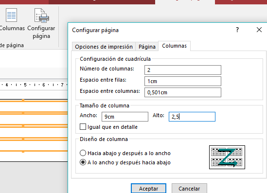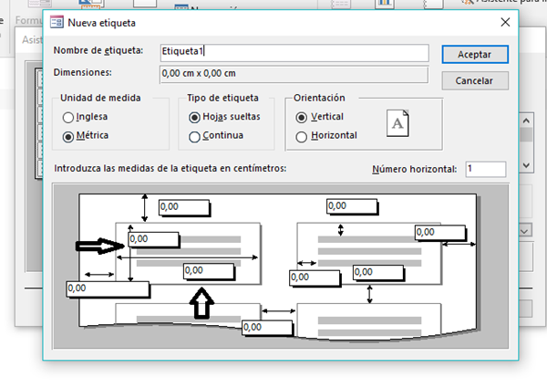 Richard, no dices donde "están" la fecha y el numero ese. Por ejemplo, supongamos que tienes una tabla Factura con Numfactura, y con ella seleccionada en la barra de menús pulsa Etiquetas, le das las dimensiones que quieras