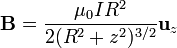 Con R= radio de la espira circular y z = distancia desde el punto ( 0, 0, 0) al centro de la espira. Tal como la estas ubicando vos. La expresion vectorial te muestra que el sentido de B es colineal con el eje z y hacia arriba o abajo segun el sentido de la corriente I circulante. Si la corriente circula en sentido del reloj ( mirando la espira desde z=0) B se dirije hacia arriba.