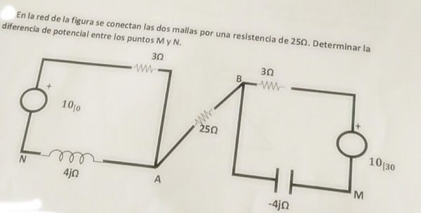 Tensión del punto M ( con referencia al N) ... (6.4 + j 4.8) - ((0.454 / 238.13°)(3)) - 10 / 30°