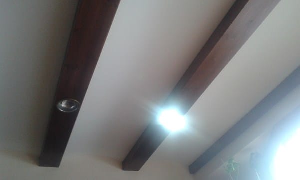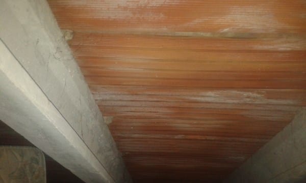 El piso está separado del local con una costrucción de bigas y tochanas. Tiene un falso techo con bigas de madera y láminas de madera en forma de arcada. En medio, entre el suelo y el falso techo hay un vacío. El caso es que tiempo atrás no habíamos tenido problemas con los ruidos aéreos (voces) y sí se oía movimiento de mesas o si se arrastraba algo.