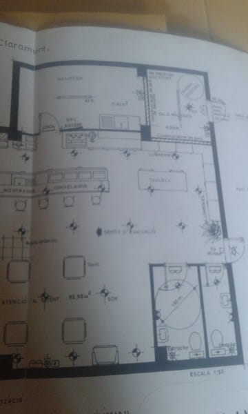 Lo siento. Los dibujos que envías son totalmente ilegibles. Dada la complejidad del problema tendríamos que disponer de los planos de arquitectura. Intenta conseguirlos en el ayuntamiento. Me gustaría también ver algunas fotos de la cafetería.