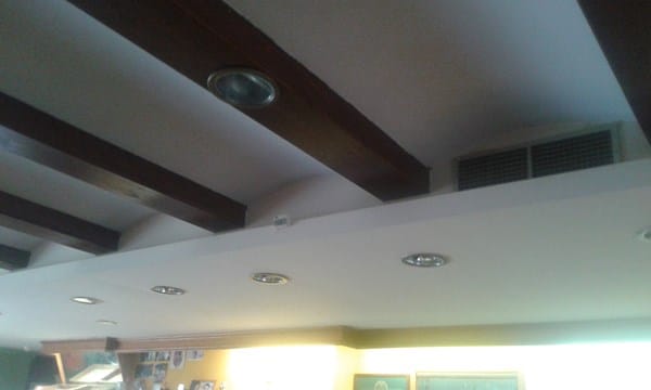 Tabique tras el cual están los baños. El otro falso techo que he comentado y que ocupa toda la sala desde la entrada principal.