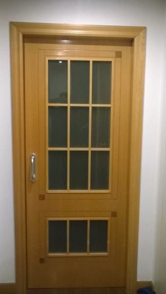 Compre una casa con una puerta corredera que no funciona bien. No tiene la guía de abajo por lo que se mueve lateralmente y choca con los marcos de la puerta. Encontré por la casa la guía que entiendo debía llevar en la parte de abajo, pero no se como desmontarla para arreglarla. Adjunto fotos de puerta y lo que creo es la guía que falta. ¿Cómo puedo arreglarlo?. Entiendo que debo desmontar la puerta pero no sale. ¿Hay qué quitar el marco?. ¿Una vez fuera como debo poner la guía de abajo?. ¿Hay otra solución?