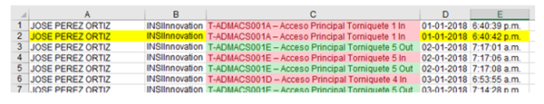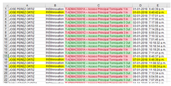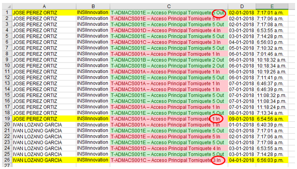 6.- Si no es primer checada “IN” u ultimo checada “OUT” que no rellene color amarillo
