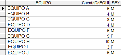 He conseguido sacar todos los equipos que tienen más de 4 o 3 corredores con la condición de sexo