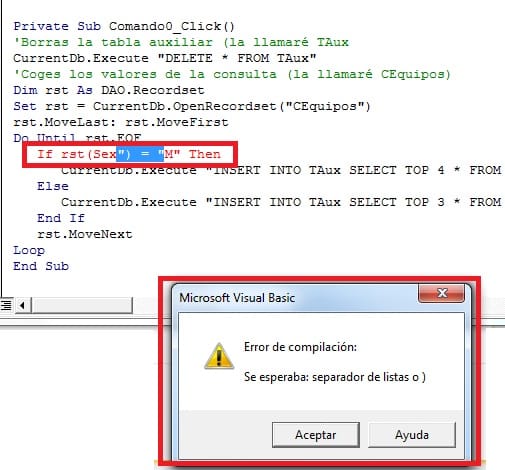 Lo que tengo es una BD con una clasificación de corredores, que tiene el DNI como Id y los siguientes campos PUESTO, DORSAL, NOMBRE, APELLIDOS, FdN (Fecha de Nacimiento), SEX (Sexo), CAT (Categoría), EQUIPO, LOCALIDAD y TIEMPO - lo que hay entre paréntesis es lo que significa la abreviatura en ese campo -. Lo que quiero es que me saque los 4 mejores tiempo de cada equipo masculino (y los sume si es posible) y los tres mejores de cada equipo femenino (y los sume si es posible).