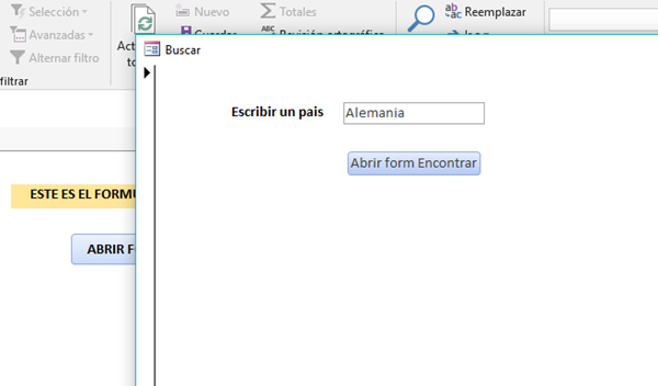 Tengo tres formularios uno llamado FormAñadir otro FomBuscar y otro formEncontrar. En el formAñadir tengo un botón que abre el formbuscar (que seria un buscador emergente con su caja de texto y su botón) que al rellenar la caja y apretar el botón este formulario se cierre y se abra el formEncontrar con los resultados de la búsqueda. Parece fácil pero no logo averiguarlo. ¿Alguien tiene alguna idea?