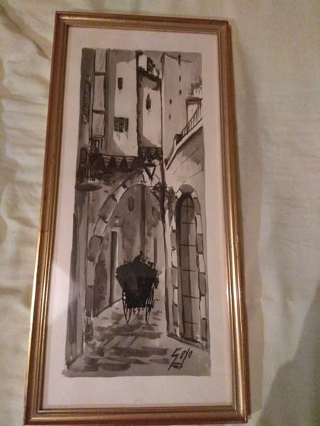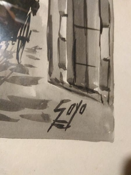 Agradecería si alguien me puede ayudar a identificar al autor de esta acuarela. Las medidas con marco son 53cm de alto por 24 cm de ancho.