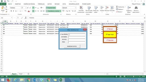 Necesito una macro para Buscar un valor (Buscar en columna A) y al hallarlo, pegue datos en las celdas del costado de las tres columnas siguientes (Columna B, C y D). Me explico, tengo un formulario (ya realizado) con cuatro TextBox y un CommandButton. TextBox1 (N° Pedido), TextBox2 (GR Madre), TextBox3 (GR Hija), TextBox4 (Peso) y CommandButton1 (Ingresar datos). La idea es que al presionar "Ingresar datos" se pongan los datos en la columna que le corresponda de acuerdo al "N° Pedido" hallado (TextBox1). Adjunto código fuente de lo que ya he desarrollado y hasta ahí va todo bien.