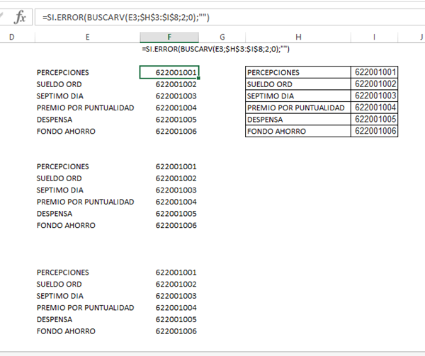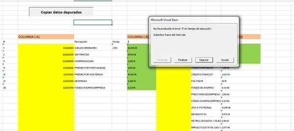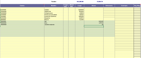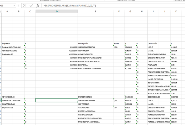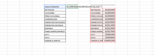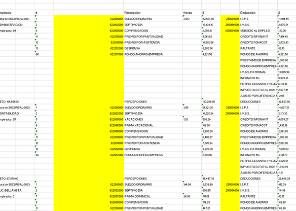 Tengo una excel con datos la cual adjunto, quisiera saber si hay alguna manera o macro que en base a la celda donde viene información como la que es sueldo ord, séptimo día. Premio por puntualidad y en la de la derecha como lo es I.S.P.T, IMSS SE se coloque dígitos es decir si en la celda empiece a buscar sueldo ord y lo encuentro me coloque, 622001001, si también encuentra séptimo día me coloque 622002002
