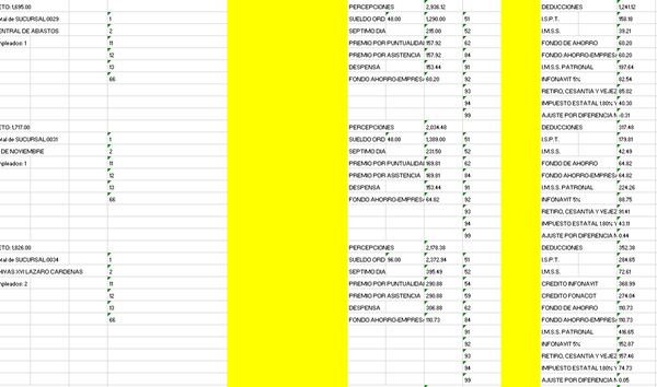 Si encuentra premio por puntualidad me coloque 622003003 y así con todos los datos de la lista y igual manera con la columna de la derecha de ispt, ¿imss etc me coloque una numeración en las barras amarillas?