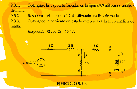 Tenes una unica fuente de c.a.= (18 cos 2t) volts.......Tension Eficaz= 12.73 volts.........................w=2