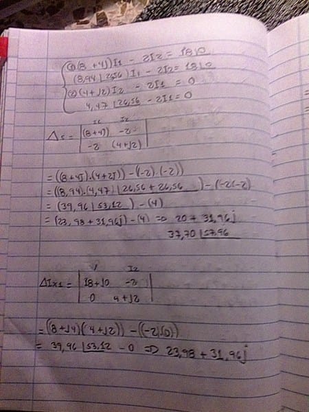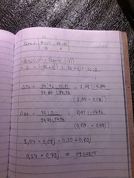 Impedancia de malla 2 = 4 +  j 2x1 - j(1/ 2 x 0.125 ) = 4 + j (2 - 4) = 4 - j2