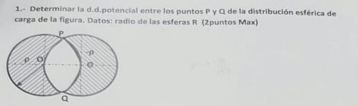 1. Determinar la d.d.potencial entre los puntos P y Q de la distribución esférica de carga de la figura . Datos : radio de las esfera R