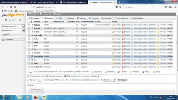 Adjunto los dos ficheros, y un pantallazo de la estructura de la tabla. Todos los campos se almacenan pero no consigo que el campo checkbox se almacene en la tabla.