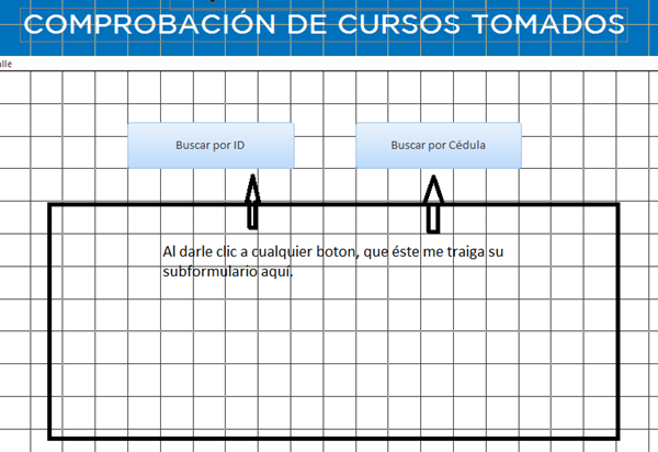 Inicialmente, solo estarán esos dos botones, pero al darle clic a cualquiera de ellos.. Quiero que me abran como suformulario, un formulario que ya está creado y que a su vez contiene otro subformulario.