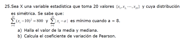 Sea X una variable estadística que toma 20 valores {x1,x2,...x20 }.