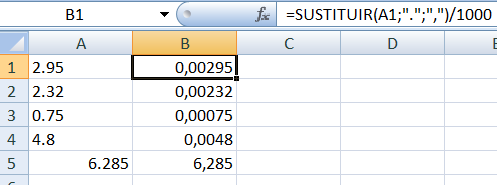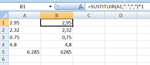 Lo que yo estoy haciendo es reemplazar el punto por la coma y en la cifras que tienen 2 decimales si que se ejecuta, pero en el caso del que esta marcado en amarillo se convierte en 6285,000 y debería ser 6,285.