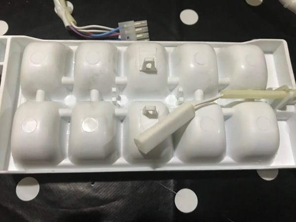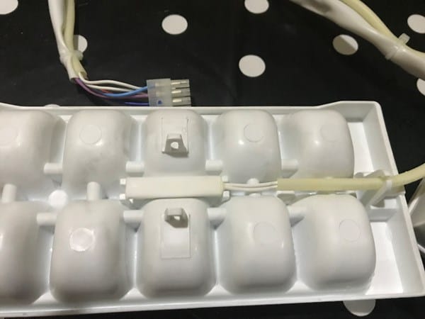 Te mando la imagen de la cubitera desarmada y creo que la resistencia es el cable blanco que se coloca debajo de la cubitera. Como hago para medir la resistencia?? con un voltímetro (téster)?? se puede cambiar sólo la resistencia o hay que cambiar todo el conjunto??Gracias....