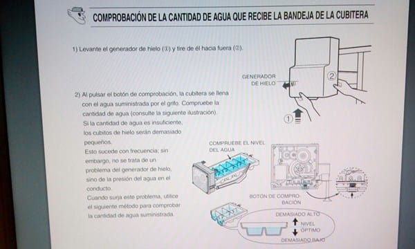 Por cierto.. antes de realizar nada.. haga el test de la cubitera.. presionando en el botón de TEST ya que el nivel de agua es esencial para que funcioen correctamente. Le añado foto que se me había pasado.