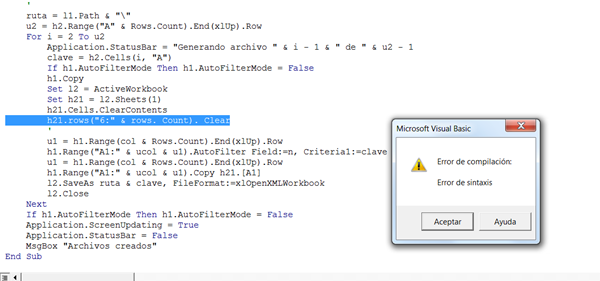 Application.StatusBar = "Generando archivo " & i - 1 & " de " & u2 - 1