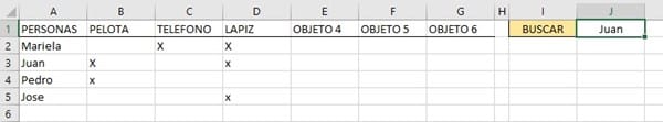 Lo que necesito saber es si yo pongo en una celda de búsqueda Juan, me devuelva que Juan puede usar el Lápiz y la pelota como explique arriba. O sea que me diga quien es el usuario de tal elemento.