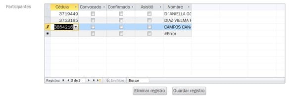 Ahora bien, como hay mas de un participante, cada vez que coloco en nuevo numero de identificación, se despliega en todos el ultimo nombre: