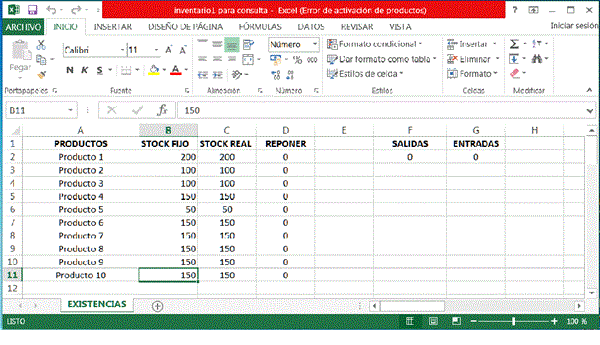 Estoy haciendo un control de stock muy sencillo (Producto, stock original, stock real, Reponer, Salidas y Entradas).