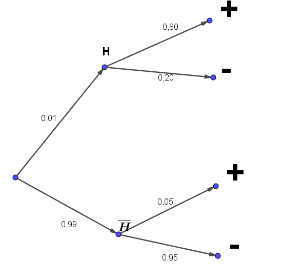 Para determinar si una persona tiene “hepatitis” se le realiza un examen de sangre de cierto tipo. La aceptación de este procedimiento se basa en lo siguiente: entre personas con hepatitis, el 80% de los exámenes de sangre descubren la enfermedad; pero el 20% fallan al hacerlo. Entre personas sin hepatitis el 5% de los diagnósticos indican error como casos de hepatitis y el 95% de los exámenes indican el diagnóstico correcto. Si tomamos una persona cualquiera de un grupo de los cuales un 1% tiene hepatitis y que en un examen de sangre muestra que esa persona tiene hepatitis. ¿Cuál es la probabilidad de que realmente tenga la enfermedad?