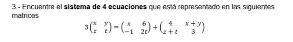 ¿Como encuentro el sistema de 4 ecuaciones de estas matrices?