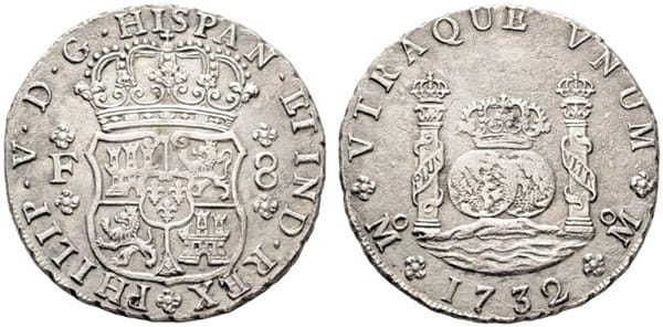 Valor de moneda 8 reales 1732 mf mx