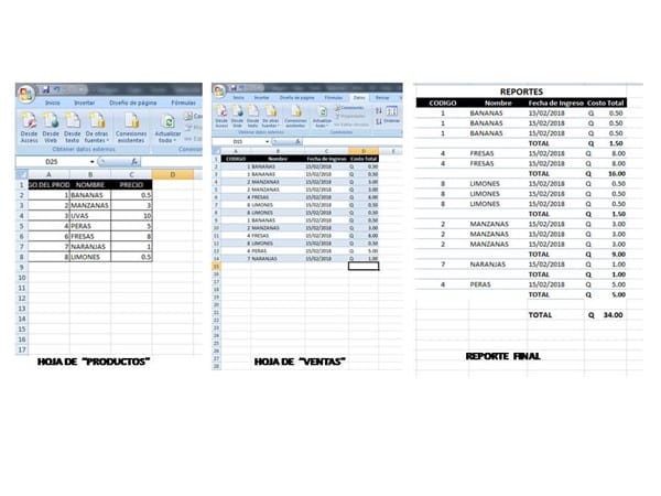 En la hoja2 están las ventas de cada uno de los productos con su código y valor