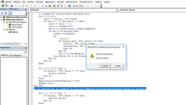 'Macro que elimine valores positivos y negativos de una columna