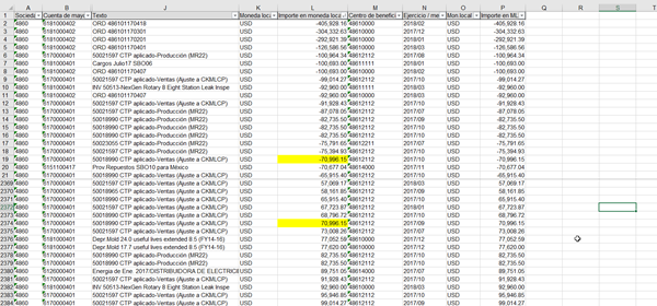 Entonces en la columna "R" quedarán marcadas con una "x" las filas que tienen negativo y su correspondiente positivo.