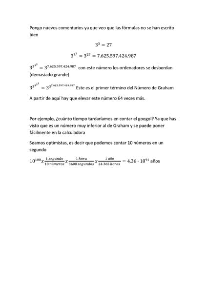 Si repetimos esta misma operación (elevar a 3) otras 64 veces más, tendremos el número de Graham. Nadie sabe de que orden es, ni cuanto es de grande, es una manera de representar el número infinito, pero respecto al infinito, este número también es pequeño.