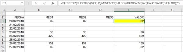 =SI.ERROR(BUSCARV($A3;Hoja1!$A:$C;2;FALSO)+BUSCARV($A3;Hoja1!$A:$C;3;FALSO);"")