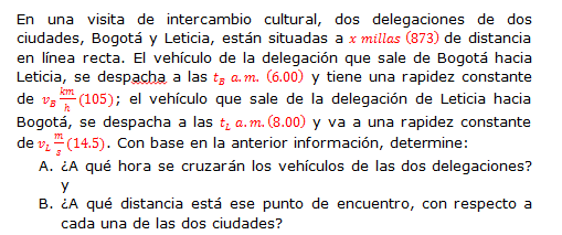 En una visita de intercambio cultural, dos delegaciones de dos ciudades, Bogotá y Leticia, están situadas a por millas (873) de