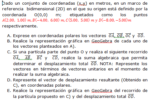 por el otro. Asi obtenes el desplazamiento total como vector resultante = A+B+C+D.