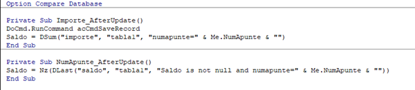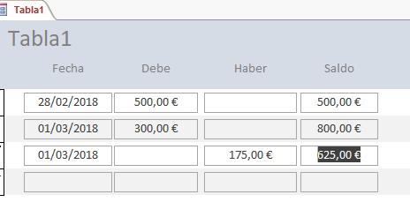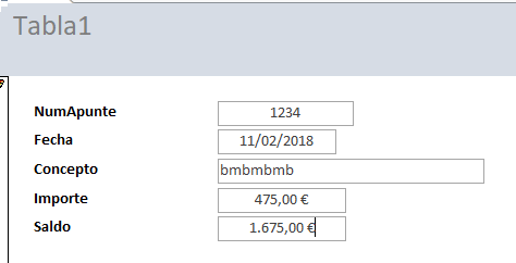 Os cuento mi problema, tengo una tabla con clave principal en nº de apunte y el resto de columnas son fecha de apunte, concepto, haber, debe y saldo. Cuando creo un apunte nuevo saco el nº apunte de forma automática, el resto de campos los pone el operador a excepción del saldo que quiero que me saque el saldo del registro último + el importe que se meta, por lo que a la hora de rellenar tendrá el saldo anterior y en cuanto metan el importe se debe actualizar el saldo del registro nuevo.