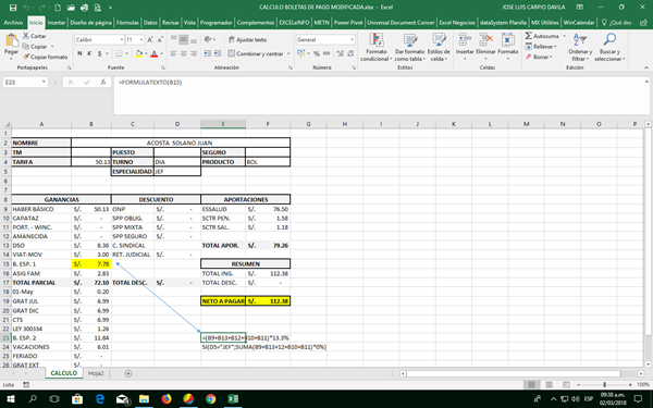 Hallar formula para calculo de planilla
