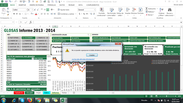 Me sale una ventana no se puede superponer una tabla dinámica sobre otra tabla dinámica, luego reviso las tablas y me sale lo mismo.