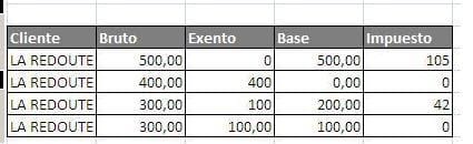 Precisaba que si dos celdas contiguas (columna Bruto y Exento) son iguales no haga nada y si la columna Exento es igual a 0 tampoco haga nada, ademas si la celda de la derecha (columna Exento) es diferente de cero (a veces se opera con cantidades negativas) me inserte esta misma fila justo debajo con todos su valores, pero en ese caso precisaba que me rectificase un valor en una tercera celda (columna Base), este valor tendría que ser la cantidad Exenta y en la columna Impuesto poner el valor a a 0.