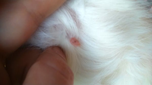 A mi perro le creció una protuberancia en la pata derecha cerca del lomo.