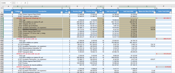 Tomando como ejemplo que el usuario eligiera " STC base asf.-4%asf, ag.1.5" ", el programa le debera llevar todos esos datos que están resaltados, lo mismo si hubiera elegido otro ítem (los de color rojo) se les debe llevar el rango comprendido entre un item y otro, pero como les dije el rango en cambiante entre un item y otro pueden haber 2 elementos y en otras partes 12, asiq ue no se como llevarme el rango especifico que necesito...